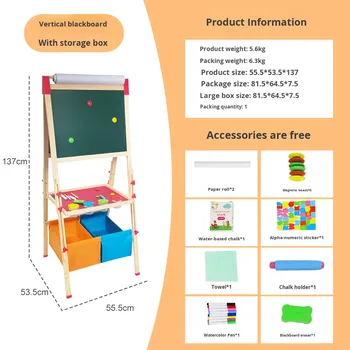 Tableau à dessin en bois massif unisexe pour enfants, hauteur réglable, double face, support magnétique, effaçable, pour écrire et gribouiller