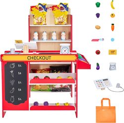 Jouet d'épicerie pour enfants avec caisse enregistreuse support de marché en bois pour faire semblant de jouer au jeu de shopping garçons filles