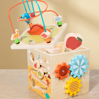עץ ילדים רב תפקודי חרוז משחק תיבת אוצר תיבת תינוק התאמת צעצוע חינוכי לגילאי 4-6 יוניסקס