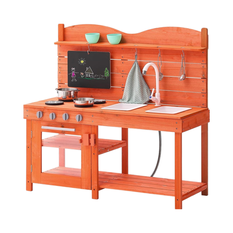 Multifunctionele Modderkeuken Buiten Met Krijtbord Werkende Waterkraan Houten Opdoen Speelset Voor Kinderen