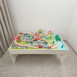 100Pcs Houten Treinset Spoorweg Met Tafelsleuf Speelgoed Treinset Met Tafel Voor Kinderen