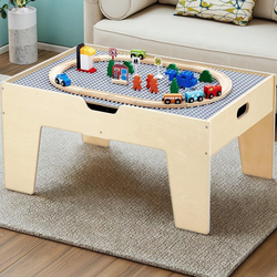 Multifunctionele Kindertreintafel Met Baanset, Houten Speeltafel Voor Speelgoedauto 'S En Bouwblokspellen